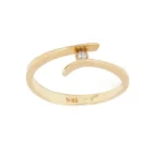 Realizado en oro amarillo 18 kt, presenta un diseño abierto y envolvente, que aporta ligereza y originalidad a la pieza. El diamante talla brillante se integra de forma sutil en el centro, aportando un destello elegante sin perder la simplicidad del diseño.