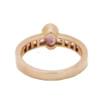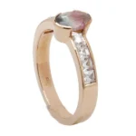 Anillo en oro rosa 18 kt con turmalina central y circonitas laterales. Un diseño elegante y moderno, ideal como anillo de compromiso con color.
