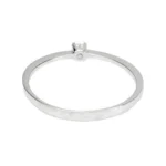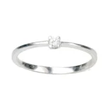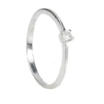 Confeccionado en oro blanco 18 kt, presenta un diamante talla brillante engarzado con grapas, que aporta un brillo puro y refinado. Su diseño fino y liviano lo convierte en una pieza cómoda y versátil, ideal para uso diario y perfecta como anillo de compromiso de estilo minimalista.
